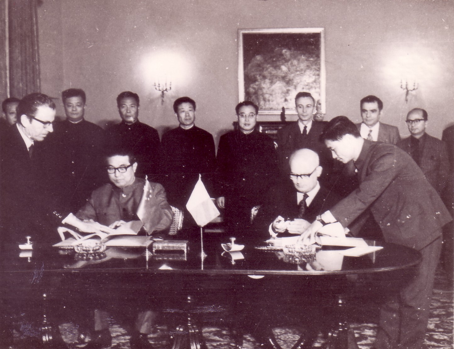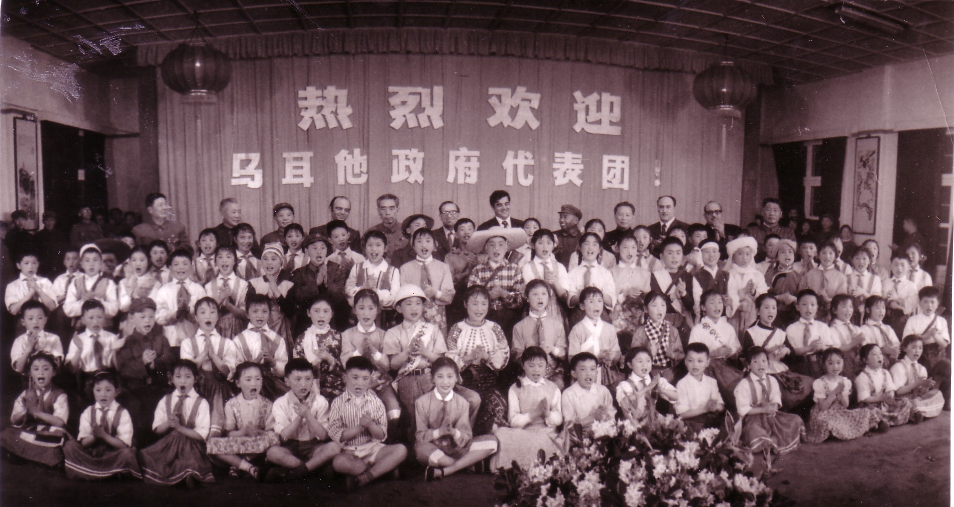 (上图:1972年3月,周恩来总理在北京人民大会堂亲切会见以明托夫总理率领的马尔他政府代表团。照片前排左为肖劲光海军司令员、吴德市长、马尔他检察总长、李先念副总理、明托夫总理、周恩来总理、马尔他工业部长、李德生空军司令员、马尔他驻华大使、姬鹏飞外交部部长;后排为外交部礼宾司司长、马方官员、冀朝铸翻译、李强外贸部部长、彭绍辉副总参谋长、韩宗正外经部副部长、乔冠华外交部副部长、王珣外交部司长、张文成外经部副局长(作者本人)、交通部副部长。)