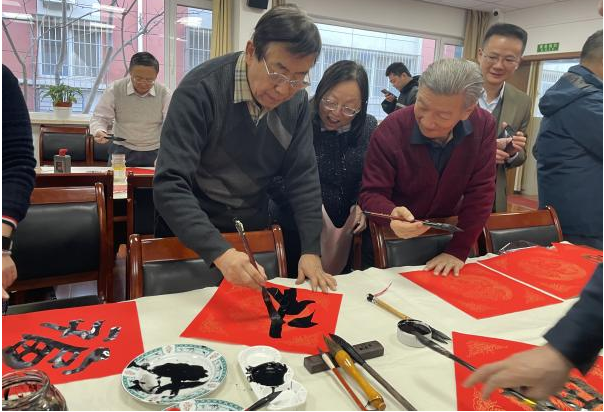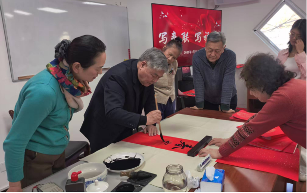 讲座结束后,老年大学接着组织了书写活动,写春联、写福字、写“多福”和“长寿”。铺开红纸时,我想起张部长说的“行书如行云流水”。我们这些白发学子,手腕虽不如王羲之轻盈,心意却同样饱满。墨在纸上游走,“福”字的一笔一划里,有我们八十载春秋沉淀的顿挫与圆融。这一横一竖,写的是福;一点一捺,浸润的是心。我把写好的“福”和“寿”字递给年轻同志,他双手接过的那份郑重,让我真切地感受到,传统文化正是在这样的温情传递中,生生不息。