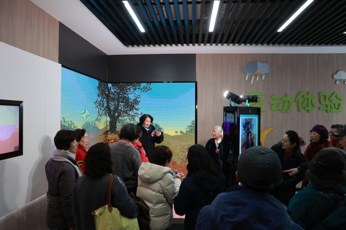 专题讲座结束后,老同志们实地参观华风集团融媒体演播室、展厅及中国气象科技展馆。在VR虚拟现实天气预报体验区、“生日天气”查询机等互动设施前,老同志们沉浸式参与体验,真切感受科技赋能气象事业的创新活力;在专业讲解员的引导下,详细了解气象科学普及、气象科技创新的最新成果,近距离触摸气象事业高质量发展的成果。