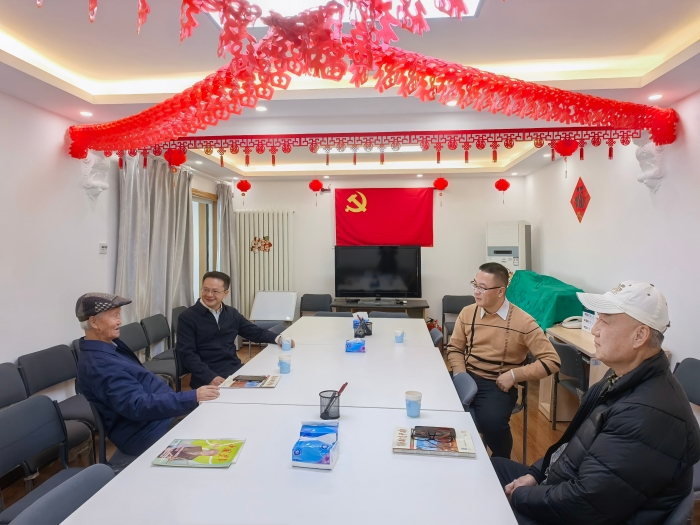 在劲松党支部活动站,黄翔一行与朱老亲切交谈,悉心询问身体调养、饮食作息等近况,真诚祝愿老同志福寿绵长、阖家美满。朱纯白老同志虽已年届九旬,却依旧身体硬朗、思路清晰、风趣健谈。他动情地回顾了自己数十年扎根岗位、投身商务事业的峥嵘岁月,忆起自己在党的培养下求学笃志及至进入原外经贸部工作,在多个驻外使馆从事经济外交工作,挺直脊梁开展对外经济贸易。他表示,即便退休多年,依然心系商务改革发展,经常收听收看与商务工作相关的新闻报道,言语间既有对过往奋斗时光的眷恋,更饱含对商务事业的深厚情谊。今昔对比,朱老感慨万千:“如今的成就真是远超想象!”他感谢组织上长期以来的关心照顾,祝愿商务事业蒸蒸日上,不断续写新的篇章。