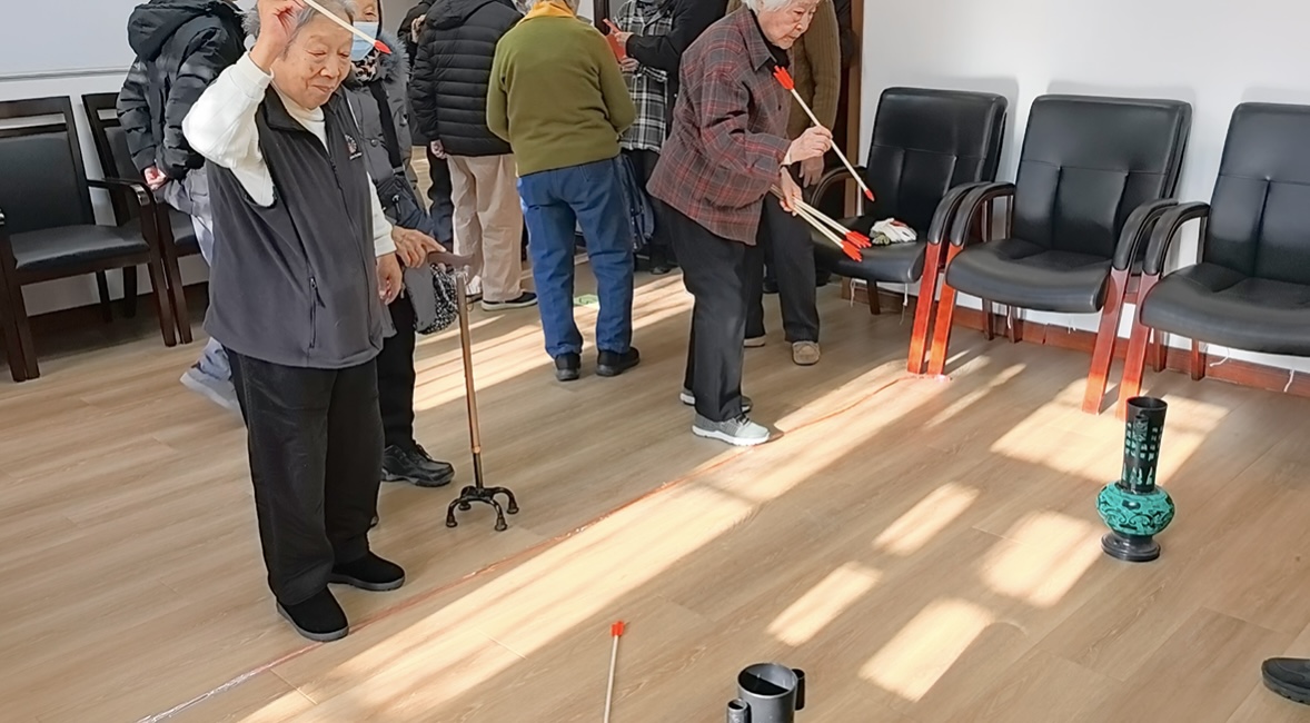 茶话会结束后,趣味运动会拉开帷幕。本次趣味运动会考虑老同志的身体状况,精心设置了轻松有趣的猜谜、钓“鱼”和投壶游戏。老同志们精神矍铄、兴致高昂,猜谜时全神贯注、屏息思索,钓“鱼”时凝神聚力、精准抛钩,投壶时沉着稳健、从容出手。现场掌声、笑声、欢呼声此起彼伏,大家在轻松愉悦的氛围中锻炼身体、增进情谊,展现出乐观积极、活力焕发的精神风貌。
