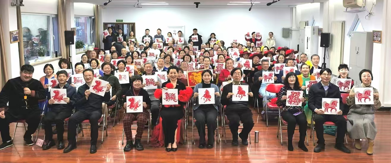 文化展示传递温馨祝福。剪纸艺术班老师带领学员将纹样精巧、寓意美好的马年剪纸作品赠予观众,还特别为学员伉俪精心制作了肖像剪纸。书法班师生挥毫泼墨,现场写“福”送“福”,笔墨间流淌着吉祥暖意。素描班师生展示了多幅以“马”为主题的素描作品,线条间满是对新春的殷切期盼与美好祝愿。朗诵表演《诗意中国》温婉大气,以铿锵韵律抒发对祖国的深情礼赞。