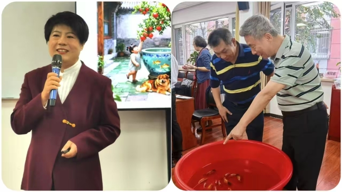 “吉庆有‘鱼’话中秋”环节里,中山公园首席讲解员王爽老师带来“游园赏月话金鱼”公益讲座,细致解读宫廷金鱼观赏史、中秋赏鱼习俗及中山公园金鱼文化。随后,老同志们兴致勃勃观赏特色金鱼品种,在灵动水景中品味传统习俗的雅致韵味,感受中华文化的深厚底蕴。