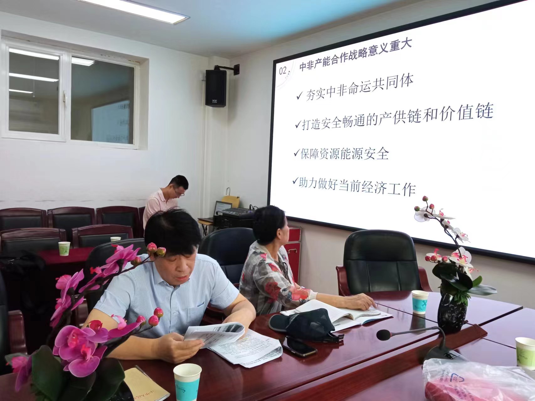 彭原同志以《加强产能合作 促进中非双循环》为题作宣讲,他结合学习习近平总书记有关重要讲话精神的体会,围绕顺应中非合作发展大势、战略意义、显著成效和风险问题等方面进行详细介绍,并提出中非产能合作需综合施策稳步推进。他的宣讲内容丰富、资料详实,与会老同志纷纷点赞。