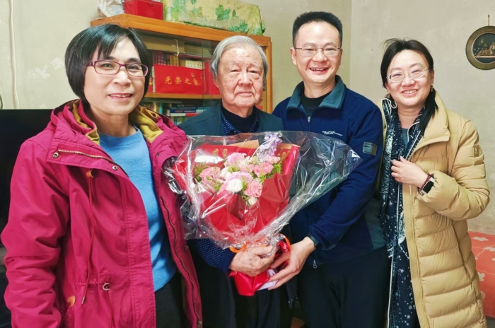 近日,商务部离退休干部局党委书记、局长黄翔一行登门看望十四号院党支部原书记沙伟老同志,为其庆贺93周岁生日,送上鲜花与美好祝福,传递党组织的关怀和温暖。